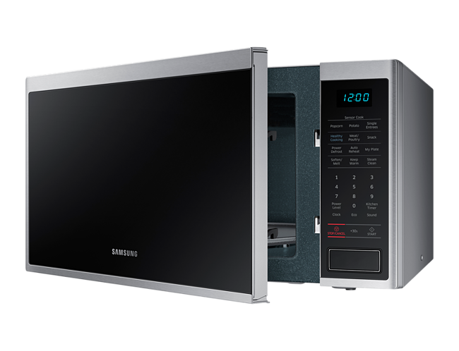 Elegant stainless steel design. The samsung 40l 1000w stainless steel microwave oven meets all my needs and i love the huge space inside the oven. Purchased the samsung ms40j5133bt 40lt 1000w stainless steel microwave last week from the good guys and i m loving it. I would love a different tone when the timer stops but for this price i can t complain.