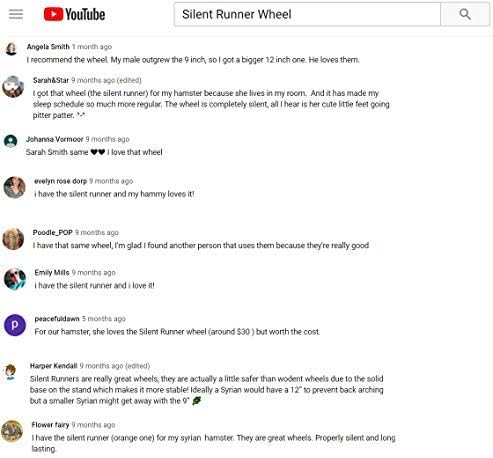 The 9 inch diameter silent runner wheel is recommended for hamsters siberian hamsters and mice. The axle free construction eliminates a dangerous center axle reducing the risk of fur tail entanglement pet wrap a round curvature of the spine and other injuries. Available in 9 12 and 12 wide. Exotic nutrition s silent runner wheel 12 is the most innovative wheel on the market for its safety features and whisper silent spin.