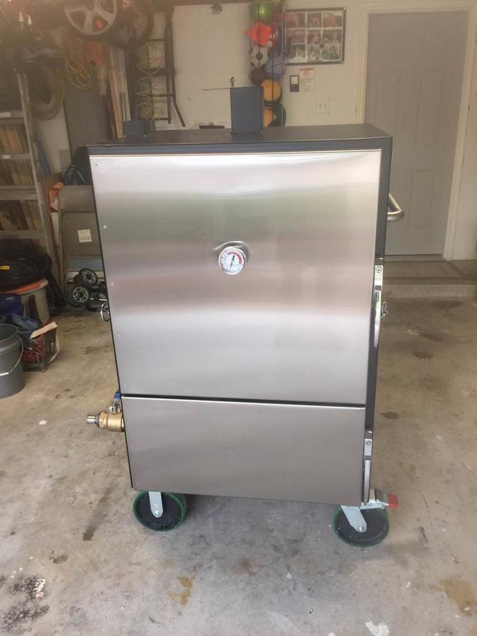 Small insulated cabinet smoker. Big poppa smokers offers a variety of bbq smoker brands in various sizes. Regular price 3 095 00 model type base model mounted to competition cart with 8. It holds 22 boston butts 12 whole briskets and 16 racks of st. These smokers are reverse flow separating the firebox from the cooking chamber by using a heat deflector and water pan system.